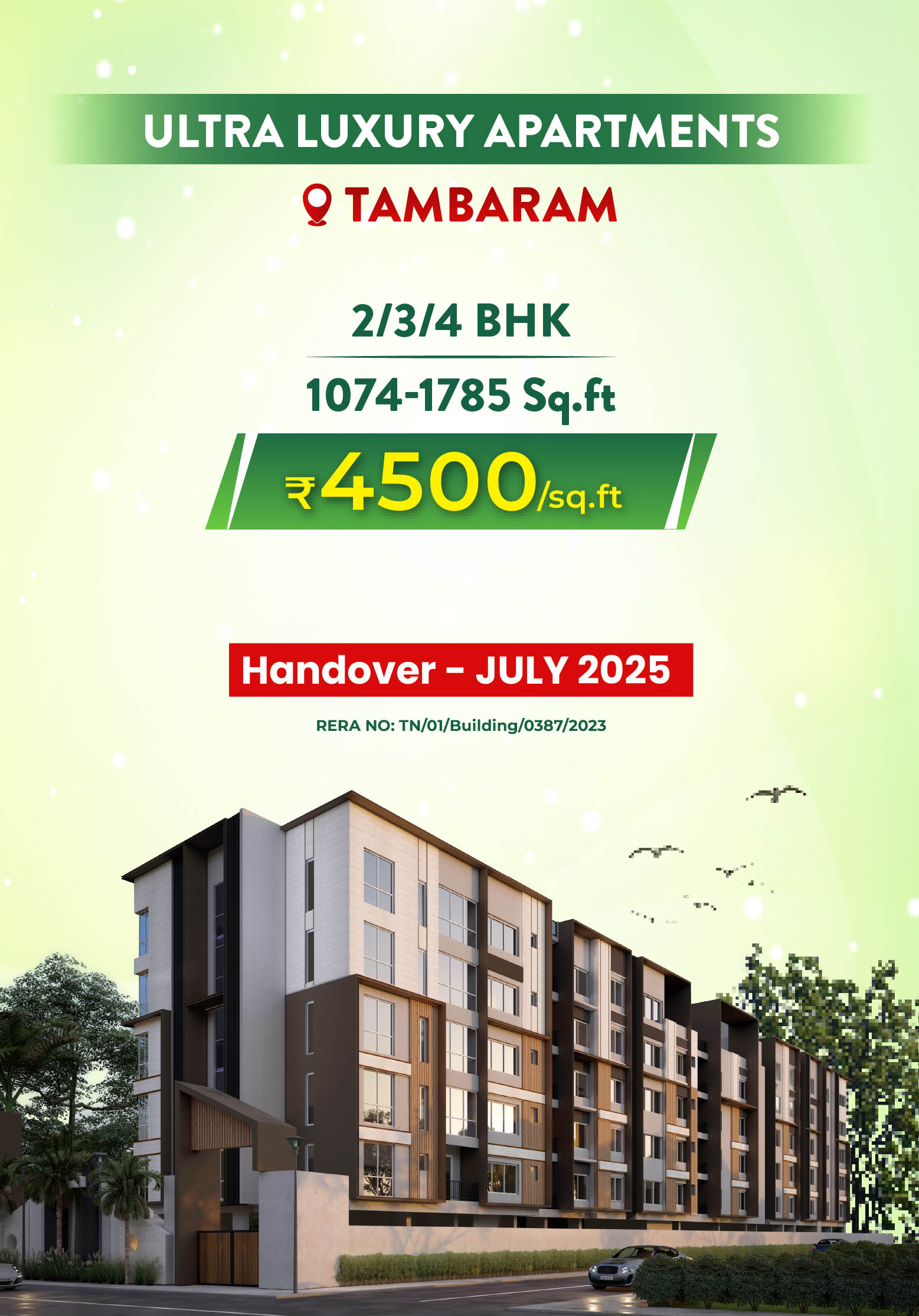 Marutham Breeze, where modern living meets tranquil surroundings in the heart of West Tambaram. Nestled amidst the bustling cityscape, Marutham Breeze offers 37 meticulously crafted units, featuring 2, 3, and 4 BHK apartments across stilt+5 floors, designed to elevate your lifestyle.